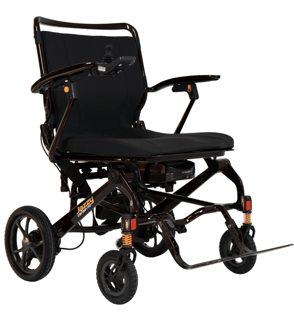 Der Jazzy Carbon Max HD kombiniert kraftvollen Antrieb mit einem kompakten, faltbaren Design.